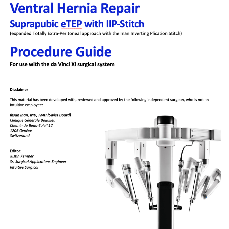 A surgical procedure guide describing robotic diastasis repair using the Inan Inverting Plication Stitch (IIPS) was released in collaboration with Intuitive Surgical as part of the da Vinci surgical procedure guide series.